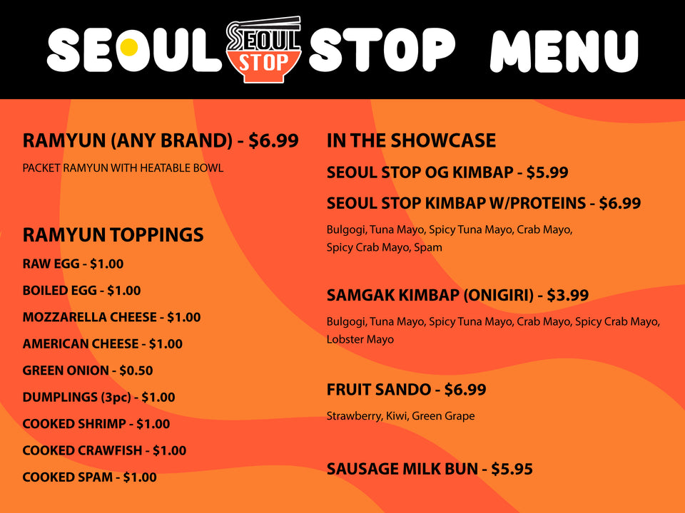 Read moreAt Seoul Stop, our mission is to deliver an authentic and innovative Korean convenience store experience rooted in care, quality, and community. We are committed to putting customers first, continually improving through creative ideas, and offering clean, honest food that brings joy and comfort to everyday life.